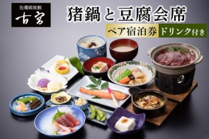 古宮旅館 猪鍋と豆腐会席 ドリンク付 ペア宿泊券【1-L】|宿泊券 ギフト 贈りもの 父の日 母の日