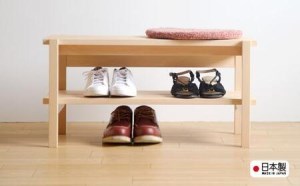 【富山県南砺市(なんとし)】ベンチとしても活用できる天然木の玄関収納家具「ベンチシェルフ」