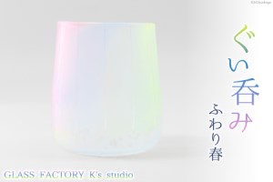 春をイメージしたピンク、水色、黄緑の三色を使い、細い透明な線を残しながらサンドブラストという技法でフロストグラスに仕上げた、柔らかい雰囲気のグラスです。