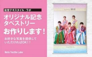 能登テキスタイル・ラボ(能登繊維振興協会)がお客様オリジナル記念タペストリーをお作りします。写真を提供していただければok!成人式など、ご要望に応じてタペストリーを制作します。