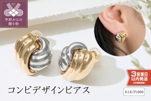 【即納】K18/プラチナ コンビデザインピアス 43-6288