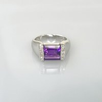 アメシストは日本では紫水晶とも呼ばれる石で紫色は古来より最も気高い色とされ人気が高く、今回は透明感のある紫の色味がしっかり感じられる石をエメラルドカットにすることで色味を効果的に引き出しています。