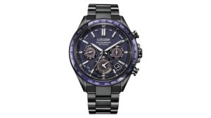 サファイアガラス製のベゼルと文字板に、宇宙を思わせる青紫カラーを採用。