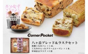 黒糖をベースにしたパン生地にローストしたクルミをどっさり入れて焼き上げた、ほんのり甘く香ばしい「黒糖くるみパン」・レーズン入りのカスタード生地に、クルミとオレンジピールを加えてケーキのような食感の「くるみの入ったクリームレーズン」八ヶ岳ブレット2種類と、きな粉たっぷり溶けるような食感の「甲州信玄ラスク」のセットです。 -