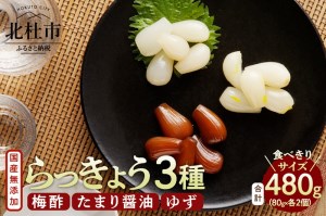 らっきょう3種(梅酢・たまり醤油・ゆず) 国産無添加 80g×6袋