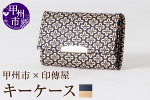 甲州市×印傳屋 キーケース(紺革×白漆)B2-1205