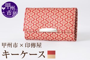 甲州市×印傳屋 キーケース(赤革×白漆)B2-1204