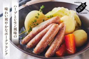 ハーブとレモン風味が特徴の爽やかな味わいのポークフランクです