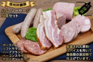 【北アルプスそだち】信州吟醸豚ハム・ソーセージ5点セット