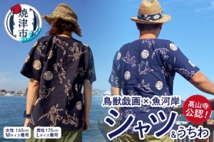 a33-011 鳥獣戯画 コラボ 魚河岸 シャツ (髙山寺公認)& うちわ セット