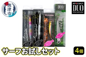 ルアーブランドDUO社の、釣れるとお声をいただいているサーフルアー『ビーチウォーカーシリーズ』から是非試してもらいたいルアーの詰め合わせ!合計4個入り!!遠投性能とアピールを兼ね備えた詰め合わせ!投げて巻くだけなので、初めての方にも!対象魚:イナダ、カンパチ、サバ、マダイ、サワラ、シーバス、ヒラメ、マゴチ、タチウオ
