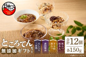 特製森田醤油タレ、だし入り三杯酢、きな粉黒みつ、黒みつ粒あん、各種3個入り(計12個)