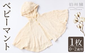 農薬や化学肥料を使わずに育てた伯州綿とオーガニックコットンで編み立てたベビーマントです。