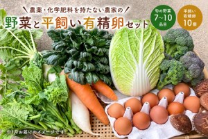 4月発送 農薬・化学肥料を持たない農家の野菜(7~10種類)と 平飼有精卵のセット