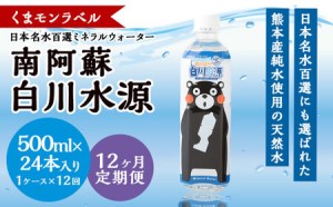 【12か月連続定期便】くまモンラベル日本名水百選ミネラルウォーター500ml×24本入1ケース×12