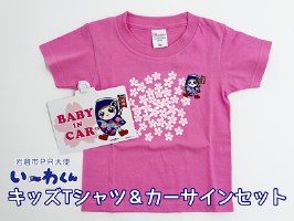 い~わくんグッズC キッズTシャツ [ピンク (サイズ100)]&カーサインセット|岩倉市 マスコッ