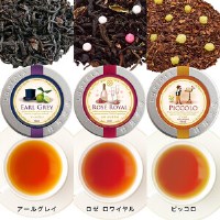 幅広い方におすすめの「EARL GREY」、華やかなスパークリングワインの香り「ROSE ROYAL」、カフェインが気になる方へ就寝前にもおすすめの「PICCOLO」は、贈り物にぴったりのデザインラベルをご用意いたしました。