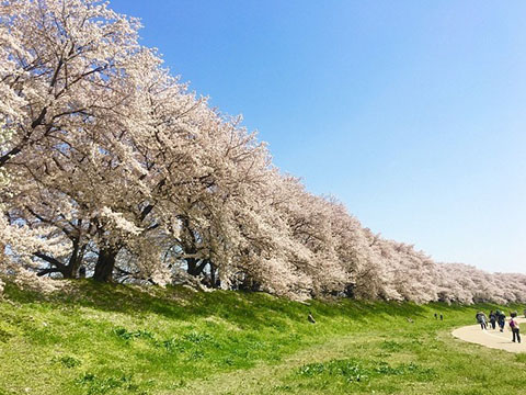 背割堤は淀川河川公園内の一区画として国営公園に指定されており、四季折々の自然が楽しめ、桜の見ごろの時期には毎年「背割堤さくらまつり」が開催され多くの人で賑わいます。同地区には「さくらであい館」があり、背割堤の桜並木が一望できる地上25mの展望塔や観光情報案内所、休憩コーナーなどが整備されています。