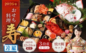 大阪・泉州の旬をおいしく届けたい。 三段重と焼き鯛がセットになった豪華おせち 一つひとつまごころ込めて手作りした新鮮な生のおせちを大晦日にお届けします。