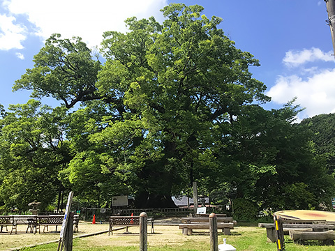 樹齢1,000年以上と推定され、野間神社の旧蟻無神社境内にあり、神木として保護されてきた能勢町の樹木のシンボル。大阪緑の百選、国の天然記念物に指定されています。 隣接するけやき資料館は「けやき」に関する資料、能勢の資料などを展示しています。