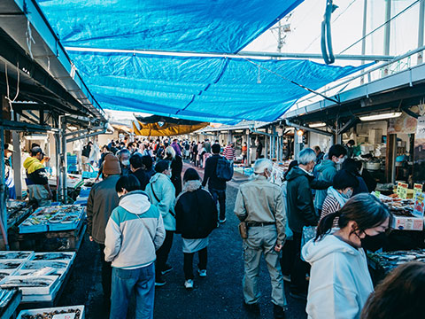 毎週日曜日(午前7時~正午まで)、田尻町内(りんくうポート北)にある田尻漁業協同組合の事務所前で、新鮮な魚や野菜、日用品などの朝市が開かれています。新鮮な海の幸を求めて朝早くから大勢の人で賑わい、売り切れるものも多くあります。