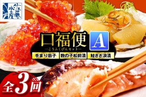毎月1回3ケ月に渡り「魚介の美味しさが詰まった口福便セット」をお届けします😊 ✅1回目 佐藤水産:手まり筋子120g×2個&ひとくち数の子松前120g×1個セット ✅2回目 佐藤水産:鮭さざ浪漬(塩糀漬)16切れ ✅3回目 佐藤水産:手まり筋子120g×1個&鮭さざ浪漬200g×2個セット ひと口サイズにカットされた手まり筋子は、熱々ご飯やおむすびに✨ ひとくち数の子松前は、数の子の食感と旨味が絶妙‼️ 鮭さざ浪漬は、秋鮭を糀漬けすることで、糀のさまざまな成分が鮭の香味を高めるロングセラー商品 消費期限:冷凍60日-18度以下 アレルギー:小麦・鮭・いか・いくら・大豆 🚚配送:冷凍便