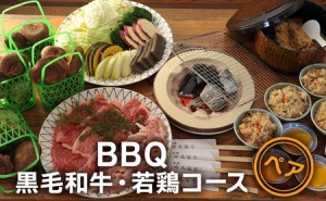 春の桜やつつじ、夏の緑、秋の紅葉など、自然に囲まれながらのバーベキューは格別です。 バーベキューは炭火焼き用にカットされた厚切りの黒毛和牛とこんがりと焼き上げた若鶏と自慢の三田米のしい茸はいずれも絶品です。 朝採れたしい茸もついています。