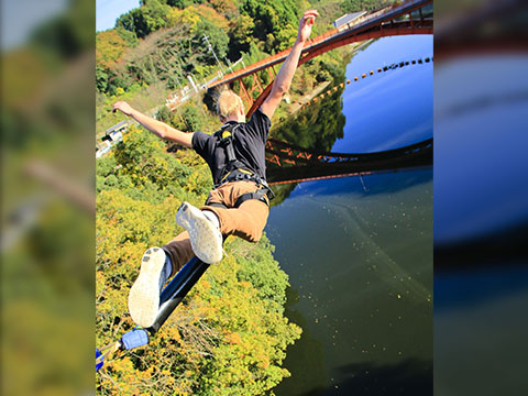 話題の「ブリッジバンジー」関西で唯一橋からバンジージャンプが楽しめると話題のスポット。高さは30mほどで、初心者でもチャレンジしやすい高さです。