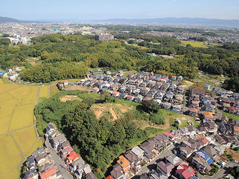 片岡城は上牧町内の下牧地区、馬見丘陵の最高所に築かれた戦国時代の山城です。戦国時代の中頃に片岡国春によって築城されたと伝えられています。