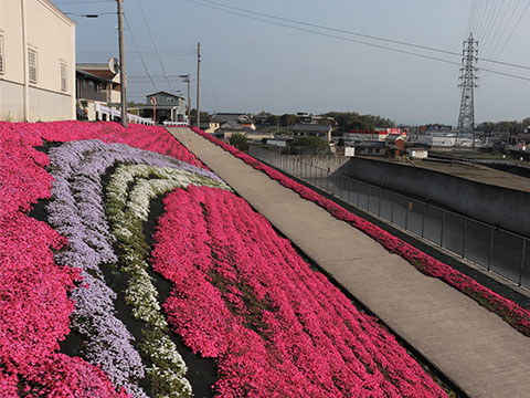 2020年の春に約6300株の芝桜が植栽された、住民の憩いの場ともなっている上牧町の新しいフォトスポットです。