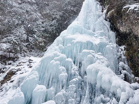 高さが50mもある「御船の滝」は、「古事記」にも名前が登場する歴史ある滝。その「御船の滝」では、冬の冷え込みによって滝全体が凍結する「氷瀑」が見られます。