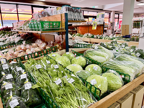 地元農家さんが持ち寄った、収穫したての旬の野菜や果物が並び、市場よりもお手頃価格で購入できると人気を集めています。桃、いちご、みかん等の贈答用の果物は全国発送にも対応。人気の地元産米も取り揃えています。どなたでも利用できる休憩室では、購入した郷土寿司やパンなどをその場で味わうことができます。
