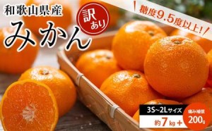 和歌山県産 糖度9.5度 以上 訳あり みかん 7kg 傷み補償+200g 3S ~ 2Lサイズ混合