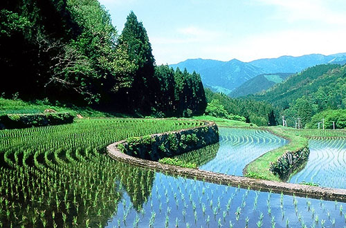 智頭の中心地から4kmほど山奥へ入ると、山々にすっぽりと沈み込んだようにひっそりと佇む板井原集落(伝統的建造物群保存地区)があらわれます。そこは、平家落人の隠れ里と言い伝えられてきた集落で、まさに日本の「原風景」と呼ぶにふさわしい情緒が漂い、タイムスリップしたような気分が味わえます。