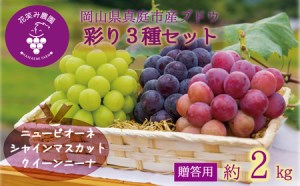【2616-0466】岡山 花笑み農園『彩り3種』(シャイン、クイーンニーナ、ピオーネ)(約2kg3
