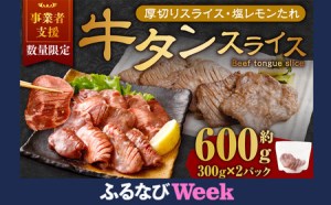 【ふるなびWEEK対象】【事業者支援品】 厚切り牛タン スライス (塩レモンタレ) 300g×2パッ