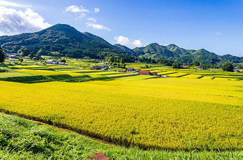標高200mの盆地から1,200m級の高峰に囲まれた地形は、豊かな自然環境を生み出し、里山の景観は四季折々に彩りを変え、ひとの心を癒します。