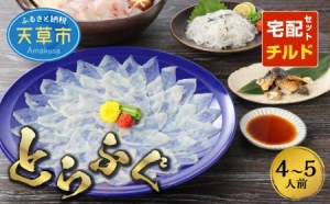 ●天草倉岳産 とらふぐ🐡 天草倉岳で、稚魚からの一貫生産で養殖された、無毒で許可を特許を取得しているトラフグのセットです。 ●こだわり 当社ととらふぐは、自社の稚魚から採卵し人工授精して、種苗生産から育成養殖、そして加工販売しています。 天然の魚をベースに、ビタミンやミネラルを配合し、良質でバランスのとれた餌で無毒ふぐの養殖をしていますので、安心安全です。 また、生産者直接加工での一貫作業により、時間短縮ができ、鮮度が高いクオリティー商品をお届けいたします。 トラフグの刺身は皿に盛り付けてお届けします。刺身、ちり、皮全てトラフグになります。 🐡━━━━━🪸━━━━━━━🦑━━━━━━━🐡━━━━━━━🪸 ~ふるさと納税担当より~ 「ご自宅でも、専門店で味わうとらふぐの感動をそのまま楽しんでいただきたい」——その想いから、この宅配セットを作りました😊 身質の良いとらふぐだけを厳選し、職人が一尾一尾丁寧に下処理。鮮度と旨みを損なわないよう、盛り付けや梱包にも細心の注意を払っています🎁 4~5人前のたっぷり量ですので、ご家族の団らんや特別な日の集まりにも最適です✨✨ 鍋はもちろん、てっさや唐揚げまで、とらふぐの魅力を余すことなく味わっていただける自信作です。ぜひ、大切な方と囲む食卓で、至福のひとときをお楽しみください! 🐡━━━━━🪸━━━━━━━🦑━━━━━━━🐡━━━━━━━🪸