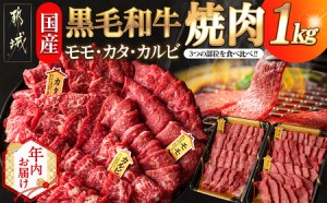 【年内お届け】【国産黒毛和牛】モモ・カタ・カルビ焼肉セット 1kg