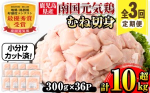 <定期便・計3回(隔月)> 南国元気鶏 むね肉 計10.8kg