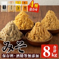 味噌詰合せ(麦みそ、合わせみそ、玄米みそ、米みそ各2kg、総合計8kg)【はつゆき屋】