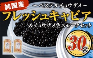 純国産フレッシュキャビア(30g・ベステル)&チョウザメ生スモーク(200g)セット