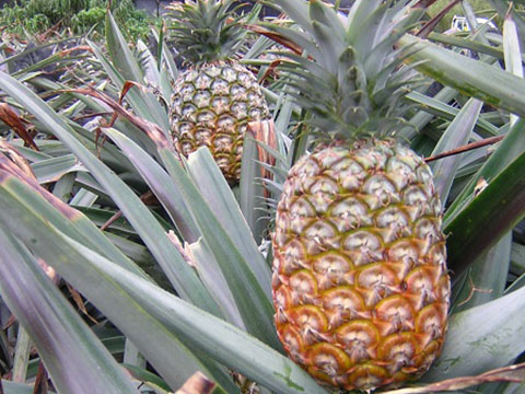 6月から8月の時期には、道の駅にはゴールドバレルやピーチパインなど様々なパインアップルが並びます。村内パインアップル加工施設では、パイン缶詰も製造されています。