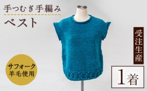 北海道士別 羊毛使用! サフォーク 手つむぎ手編みベスト (1点)