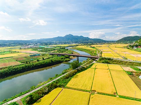 山と川、田園風景の広がる豊かな自然の町