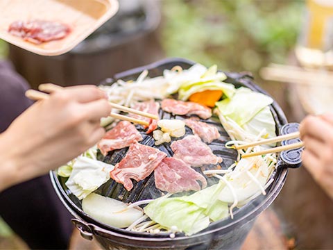 遠野は、知る人ぞ知るジンギスカンの良く食べられている町です。遠野のジンギスカンは焼いた肉にタレを付けて食べるタイプです。「一家に一台ジンギスカン鍋」というくらい、遠野ではいたってポピュラーな食べ物です。花見などでは、穴の開いたバケツの上にジンギスカン鍋を乗せ外で食べることが多いです。