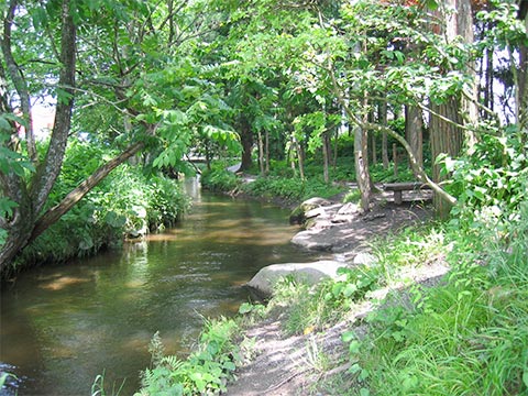 遠野の小川の淵にはカッパが多く住み、人々を驚かし、いたずらをしたという話がたくさん残っています。さらさらと流れるカッパ淵は、うっそうとした茂みに覆われ、いつカッパが現れてもおかしくはない雰囲気です。