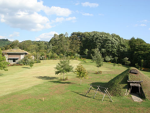 遺跡に広がる「御所野縄文公園」では土屋根の竪穴建物などが復元されており、縄文時代の風景を感じることができます。