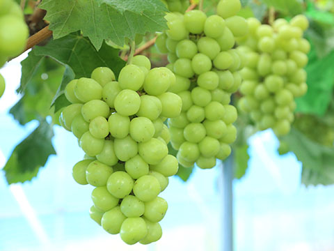 山元町は、かつて東北有数のぶどうの産地として知られ、大正時代初期に「ぶどう液」を開発し、日本の「ぶどう液」発祥の地と言われています。 ぶどう液はもちろん生食用ぶどうもあり、皮ごと食べられる「シャインマスカット」、大きな実が特徴の「ピオーネ」、糖度が高くコクがある珍しい品種の「高墨」があります。