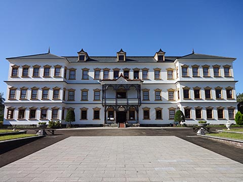 建物すべてが天然秋田杉造りで明治時代に小坂鉱山が繁栄した時代を偲ばせる豪壮華麗な建築美を誇る小坂町のシンボルの一つです。館内は資料館やレストラン、ワインをはじめ小坂町の特産品を扱う売店もあり、ドレスレンタルを利用すれば好きな場所で撮影も楽しむことができます(事前予約制・有料)。